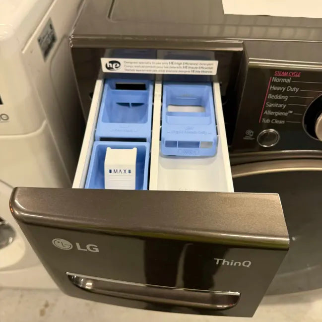 The LG WM4000HBA Front Load Washer delivers powerful and efficient cleaning with a premium, modern design. Built for dependable everyday performance, it features advanced wash technology that provides thorough yet gentle fabric care. With a spacious drum, multiple wash cycles, and energy-efficient operation, this washer meets a wide range of laundry needs. Its sleek black steel finish and quiet operation make it a stylish and reliable addition to any laundry room.