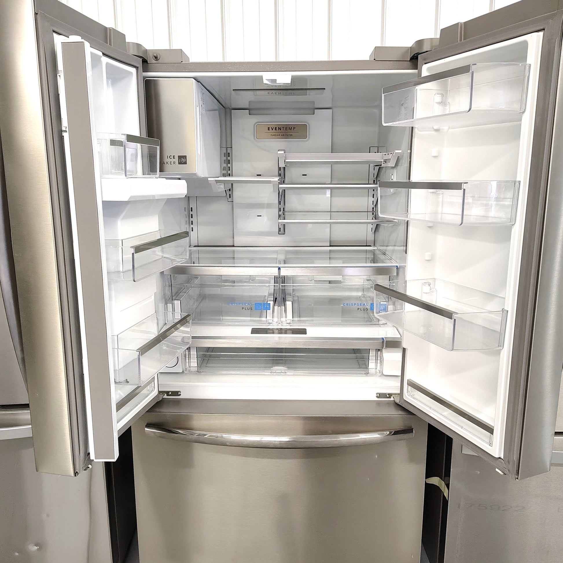 The Frigidaire Gallery French door refrigerator reduces food waste and energy consumption thanks to its ethylene-removing crisper drawers, auto-closing doors, and EvenTemp Cooling System that optimizes airflow to prevent warm spots and unwanted freezing throughout the fresh food and freezer. Choose between three temperature settings for the full-width drawer depending on what kind of food you decide to store there.