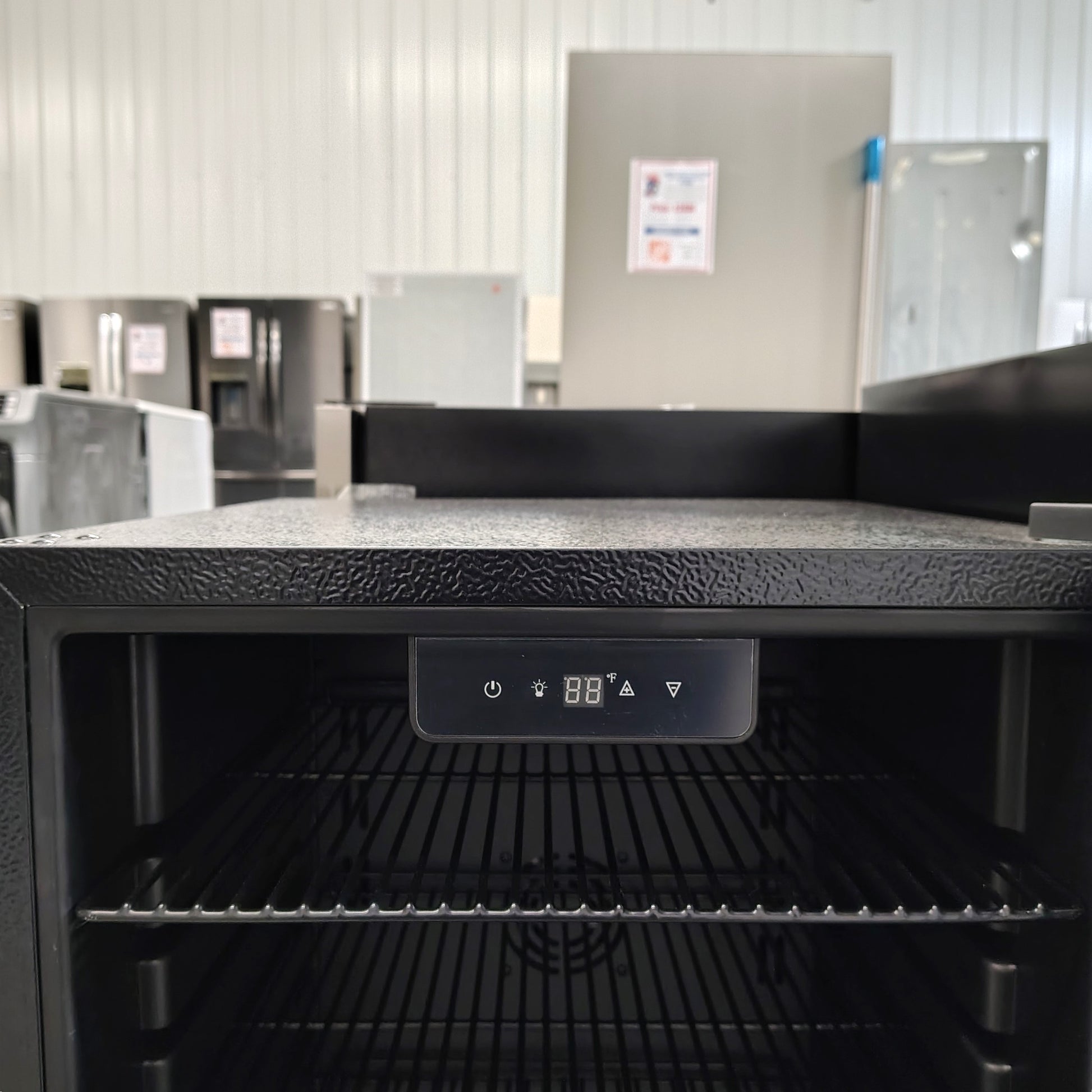 For a more stylish mini-fridge, consider this glass-door, black and stainless, handle-free unit with a blue LED temperature display and interior light which can be switched on or off. The hinges are reversible, so it can fit discreetly into a corner or stand on its own as a console. With 3.2 cu ft of space and four adjustable wire shelves, there is plenty of room for a variety of food and beverages.