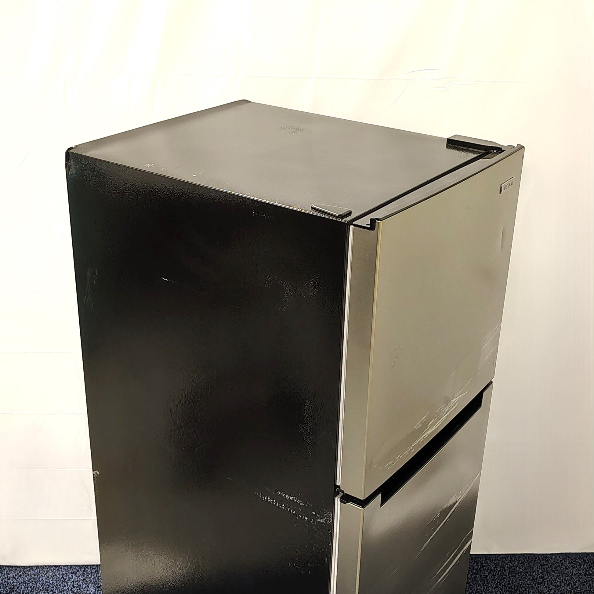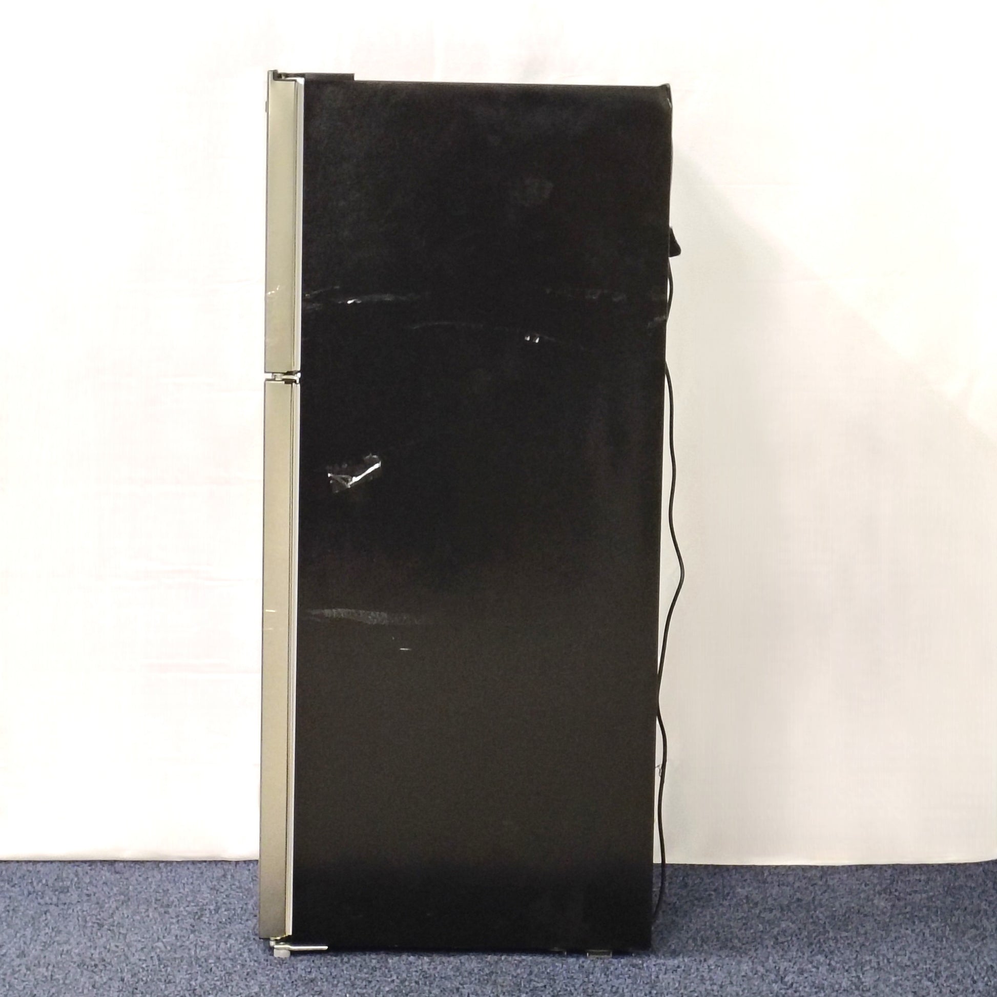 This Vissani top freezer refrigerator works perfectly, has 5 temperature levels, and maximizes usable space with full-width glass shelves and drawer as well as door shelves. It has some dents and tape across the front, which brings the price down from Home Depot's listing of $459 to $425.