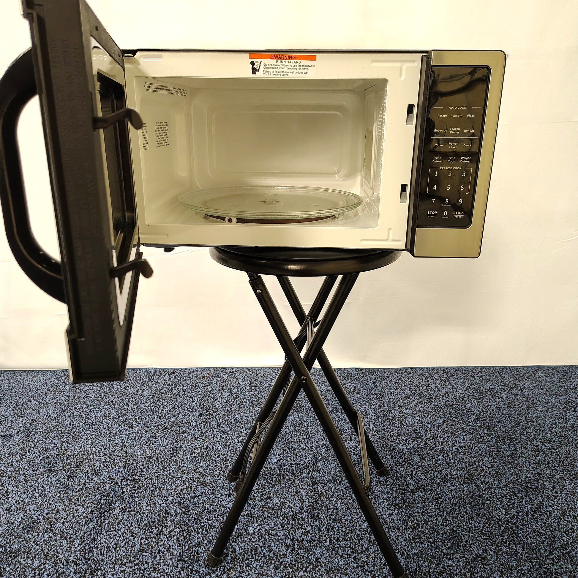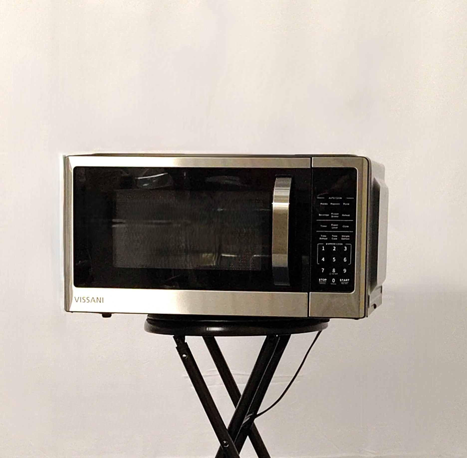 This Vissani stainless-steel countertop microwave has 1,000-Watt power, 10 power levels, 6 cooking and reheating programs, and weight defrosting. It also features child-safe lock out controls and an LED light.