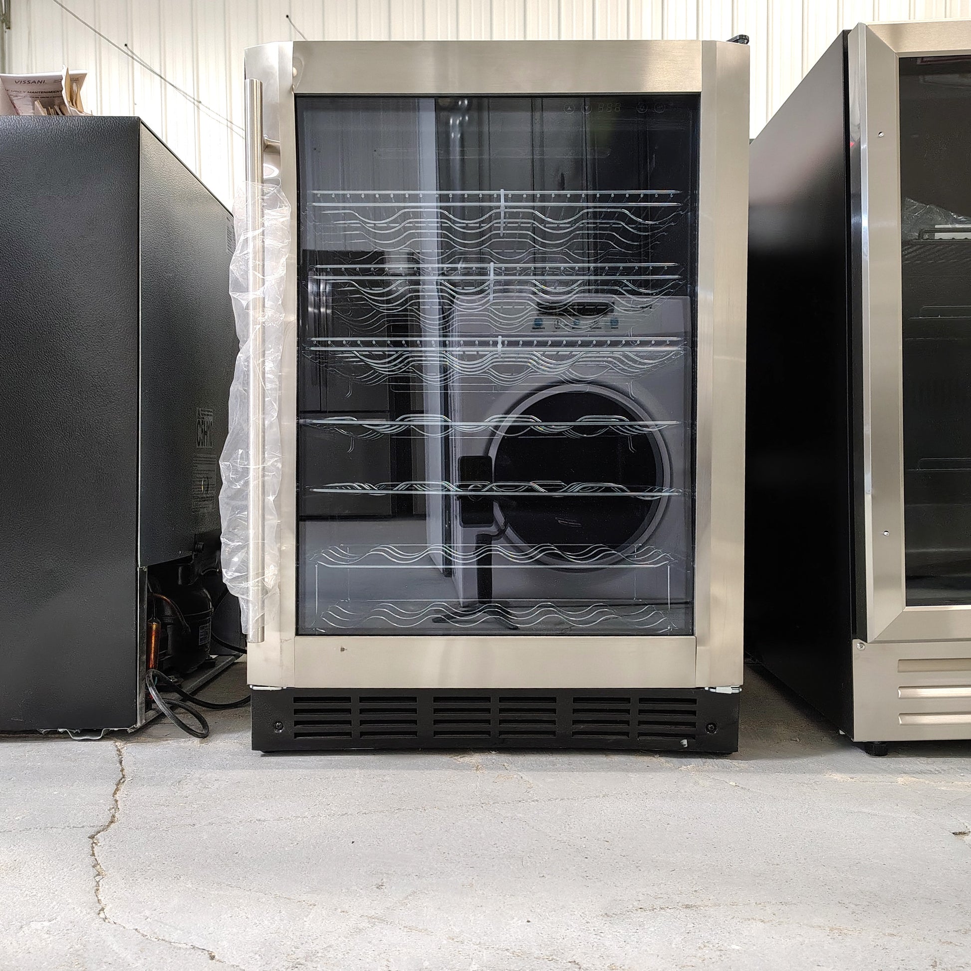 Complete the look with this under-the-counter beverage cooler which can hold up to 154 (12 oz.) cans or up to 50 wine bottles. The stainless-steel frame and handle offer durability and an attractive look, and the smoked glass door is reversible for functionality in any space.