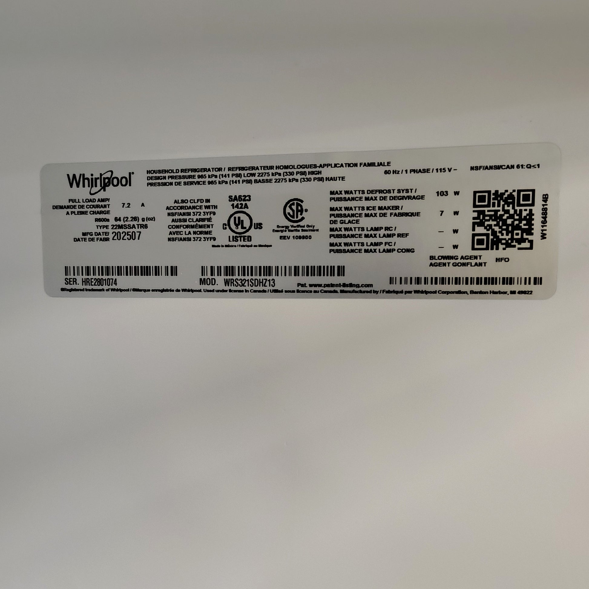Whirlpool 21.4 cu. ft. Side by Side Refrigerator in Fingerprint Resistant Stainless Finish WRS321SDHZ13
